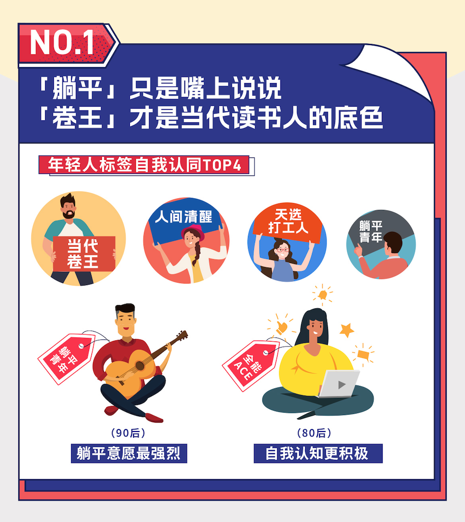 基于报告洞察发现:“躺平”其实只是嘴上说说,“卷王”才是当代年轻人的底色;“长衫高台”背后是年轻人脑力劳动竞争激烈;高学历不一定带来好的工作和生活,解决问题的能力才是王道;多思考、多总结,以及阅读、看相关书籍,是年轻人提升个人能力最重要的手段。
