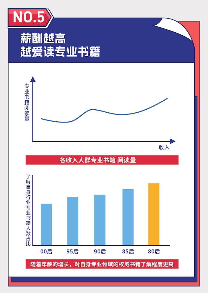 报告显示:日均阅读时长与工作和生活满意度呈现明显正相关;薪酬越高的人,用更多的阅读时间来看专业书籍;工龄越长,阅读更多专业书籍,对工作和生活满意度越高;阅读对学习能力提升明显,成为对抗“精神衰老”的必要手段。