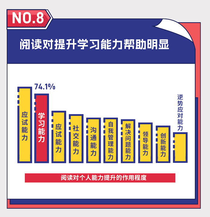 而阅读解决不了的问题,或许可以交给时间。随着年龄的增长,年轻人解决问题、逆势应对、自我管理、领导能力逐步提升;学习能力、应试能力、创新能力逐步下降;其中阅读对学习能力提升明显,成为对抗“精神衰老”的必要手段。沟通、社交能力则在到达一定水平后保持相对稳定。