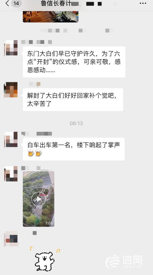而同样喜悦的还有小区的物业工作人员。据悉,自3日起,小区物业就在陆续进行“解封前”的准备工作,并在4日于小区中心湖边挂起了大红灯笼,挂上了“守得云开疫散 鲁信长春皆安”的条幅。而为了迎接今早6时解封,物业一早就在小区摆上了花篮,设置了拱门庆祝鲁信长春花园解封。“今晚能回家睡觉了,好几天没回家了。”物业工作人员向信网介绍,自小区临时封控起,为保障小区秩序,物业许多工作人员“逆行”进入小区,“战疫首战大捷,离不开所有工作人员和居民们的努力。”