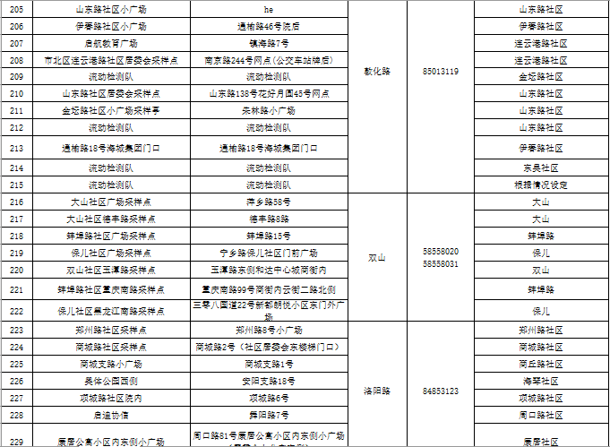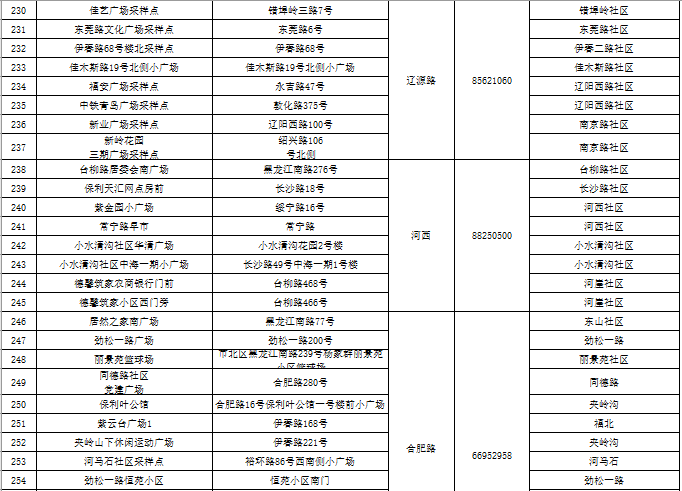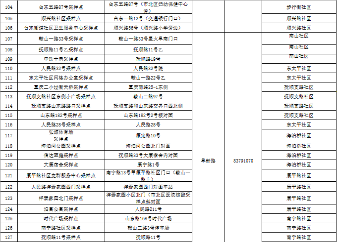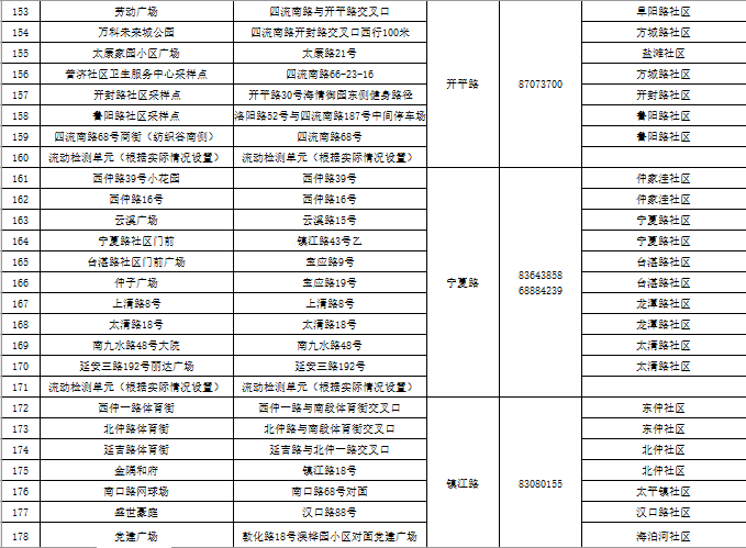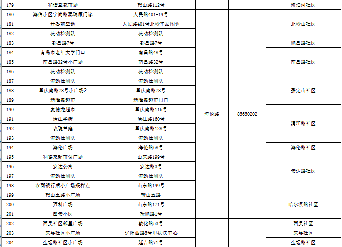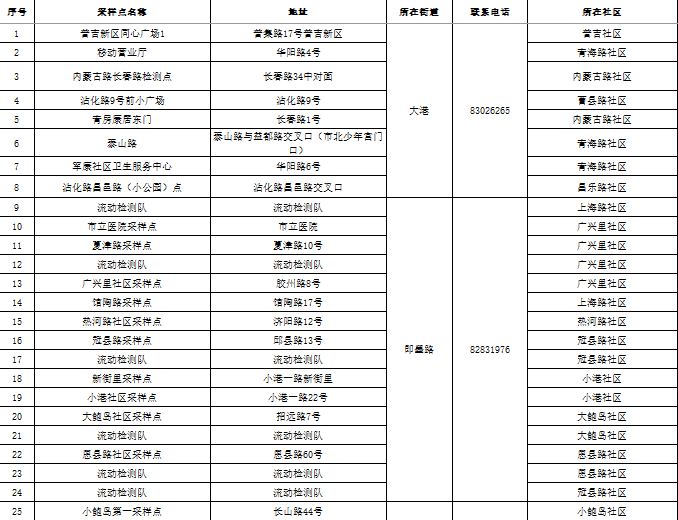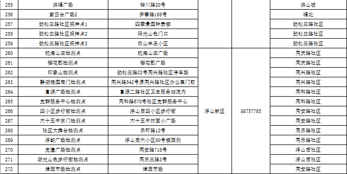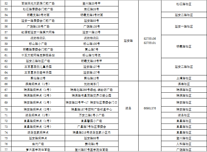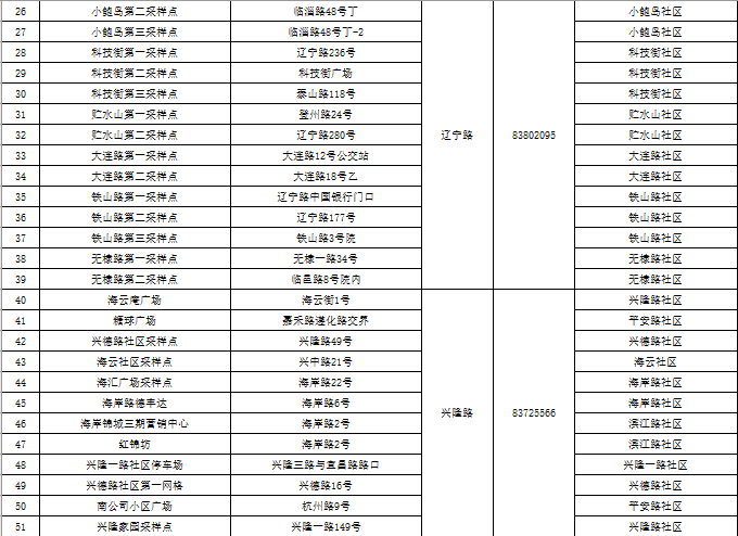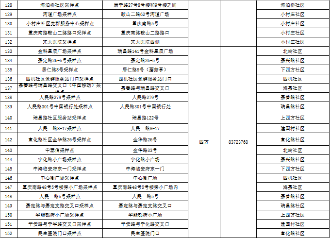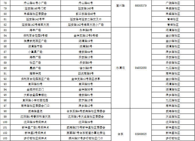 市北区区域核酸检测采样点一览表