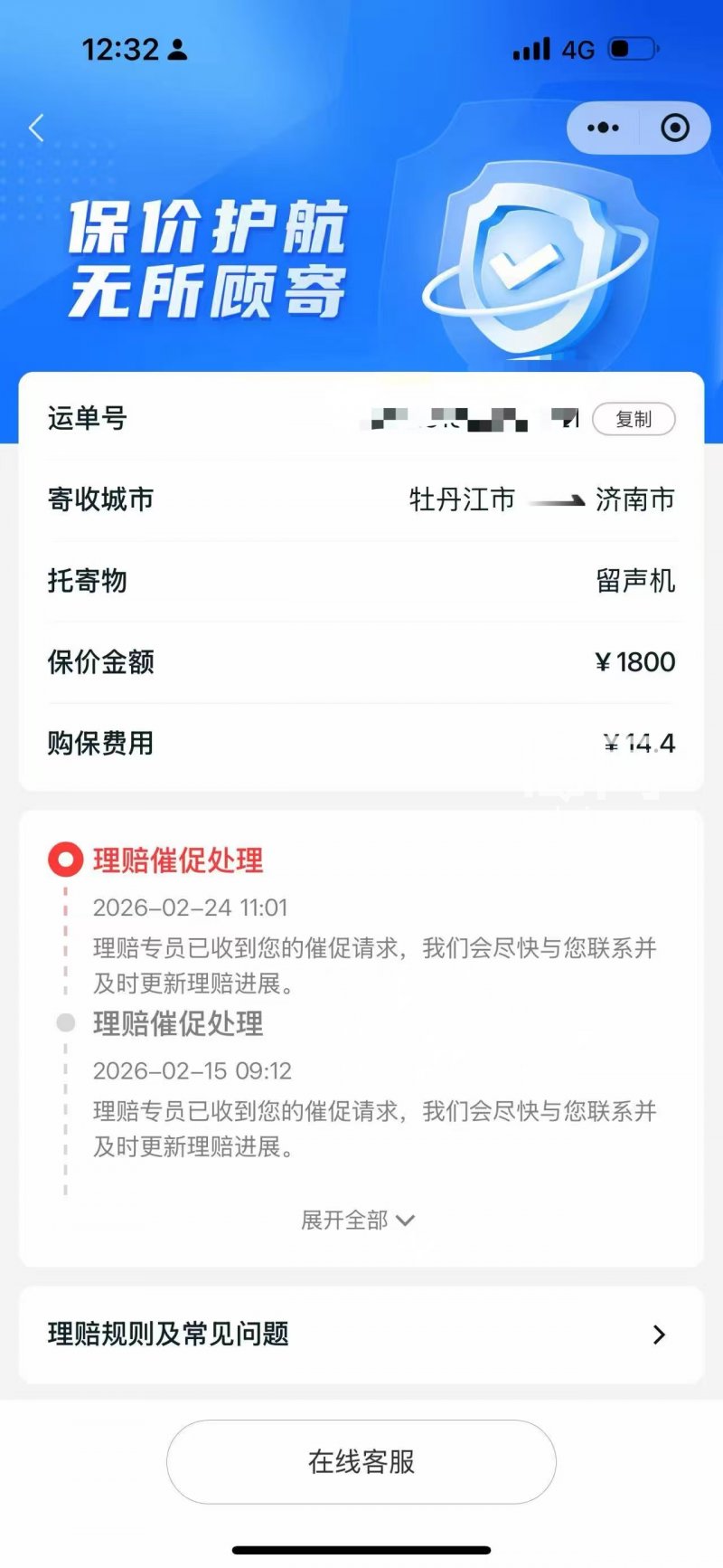 据王女士介绍,这台二手黑胶唱机是她花费1680元从牡丹江市一位卖家手中购得。为保障运输安全,她特意要求选择顺丰快递,并购买了保价金额为1800元的“足额保”服务,保价费14.4元,同时支付了75元运费与27元包装费。