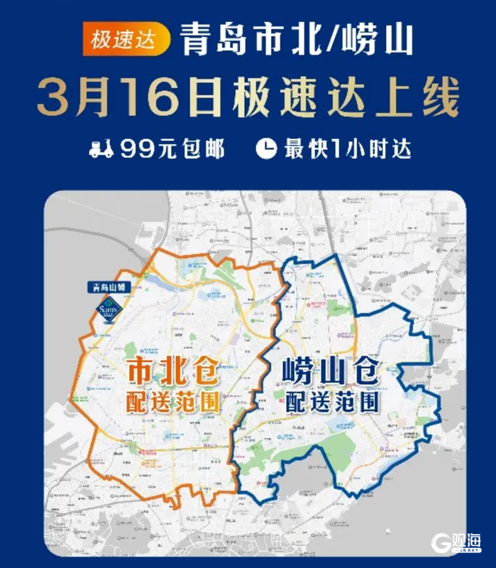 青岛首家山姆会员商店“极速达”将于3月16日上线。届时,崂山区、市北区部分地区的会员可通过山姆App线上下单,享受最快1小时送达的便捷购物体验。