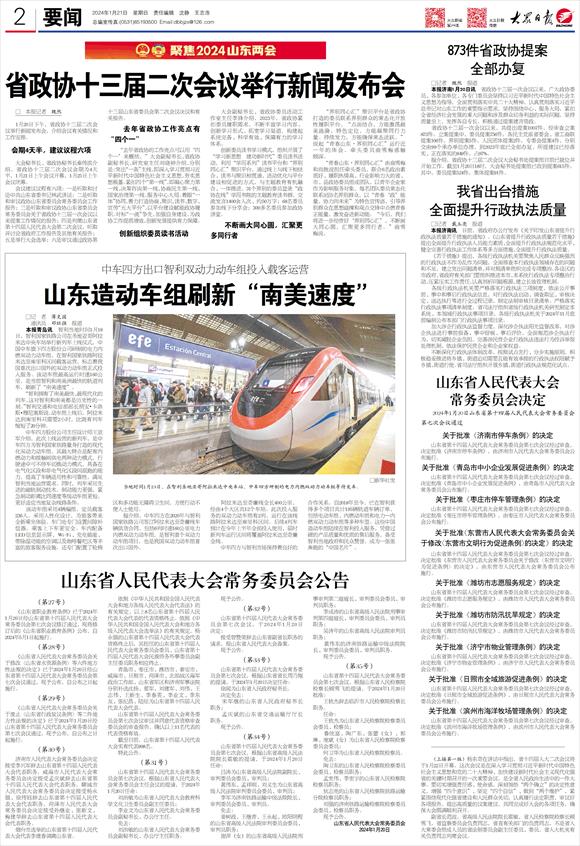 山东省第十四届人民代表大会常务委员会第七次会议,于2024年1月20日决定: